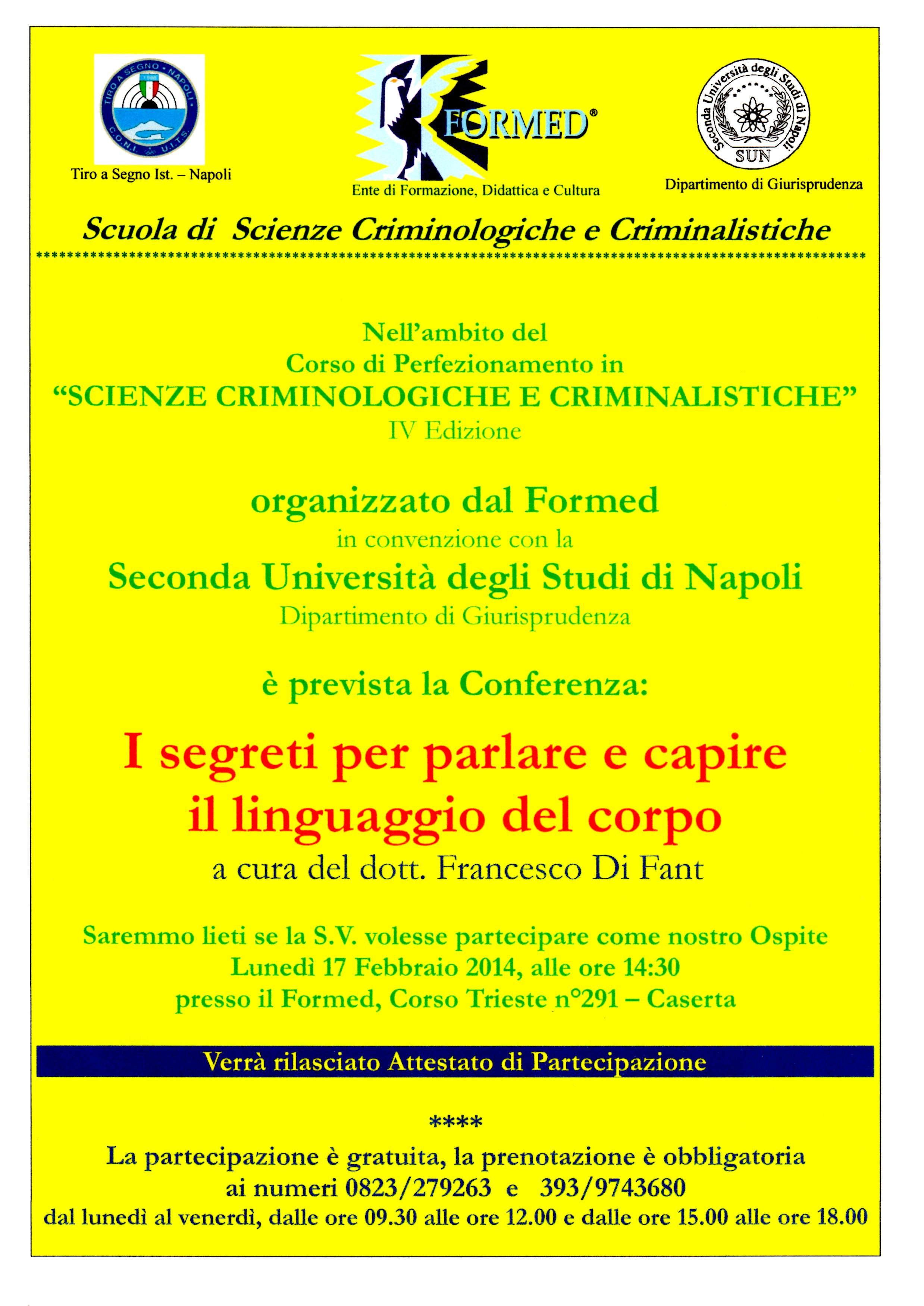 Organizzato dal Formed in convenzione con la Seconda Università degli Studi di Napoli (Dipartimento di Giurisprudenza) nell’ambito del Corso di Perfezionamento in “Scienze Criminologiche e Criminalistiche” – IV edizione